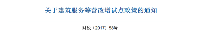 7月11日,财政部、税务总局发布《关于建筑服务等营改增试点政策的通知》财税〔2017〕58号。补充通知了六条营改增试点期间建筑服务等政策。